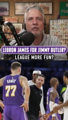 在最新一期的The Ringer播客节目中,NBA名记Bill Simmons谈到了湖人与勇士的情况,他认为两支近况不佳的球队应该交换球星,他提出了一个方案:用勒布朗-詹姆斯与吉米-巴特勒互换。