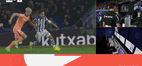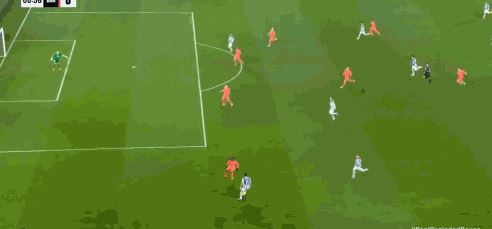 第9分钟,费尔明破门,但是因奥尔莫先前抢断犯规被判无效